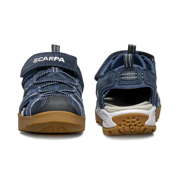 MOJITO SANDAL KID са лятната версия на най-популярния модел на Scarpa - Mojito, с горна част изработена от велур и текстил. Затворени пръсти за повишена защита и анатомичен калъп.