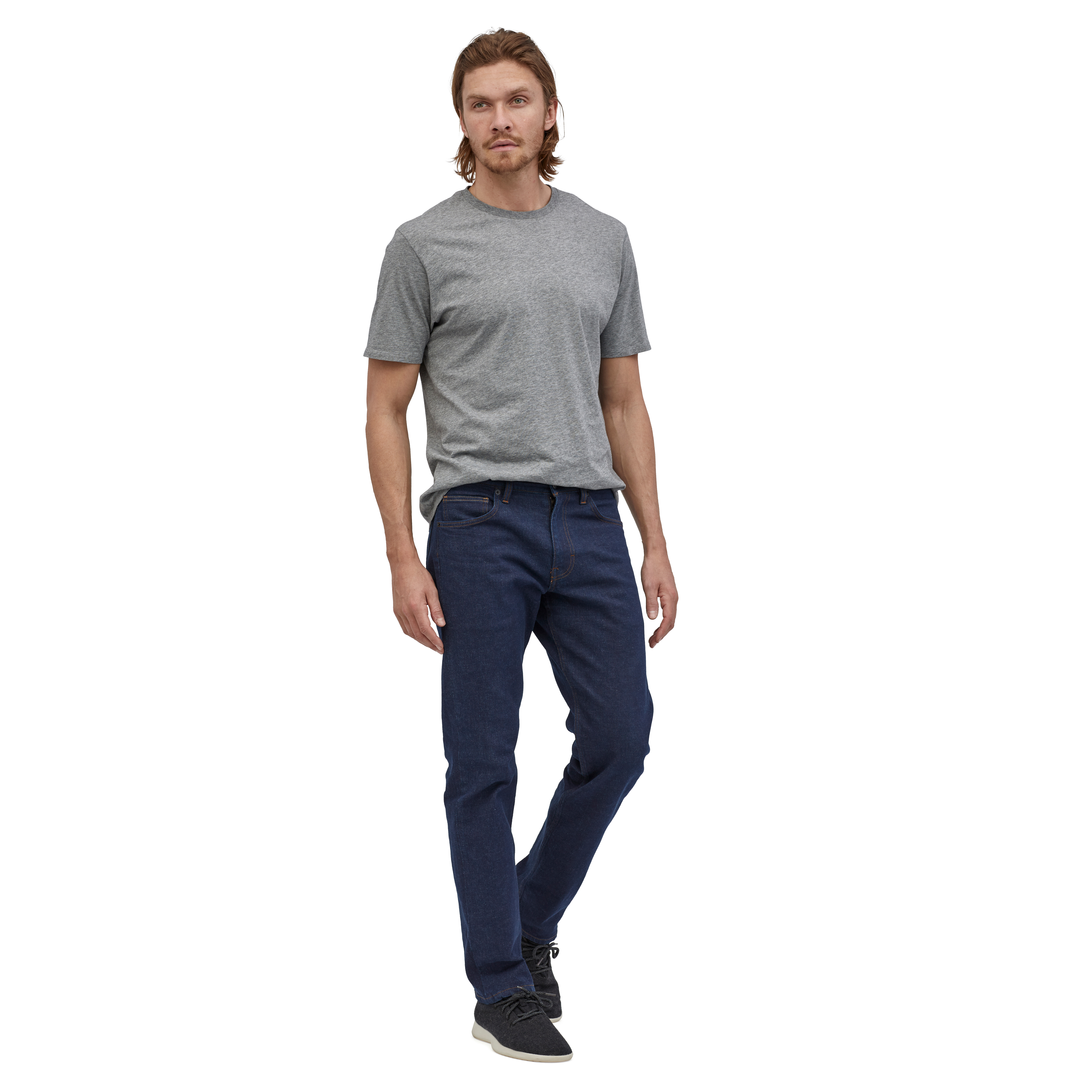 Дънки за ежедневно носене и изработени от Regenerative Organic Certified™ памук (рециклиран памук). Вътрешният шев е 81,28 см.